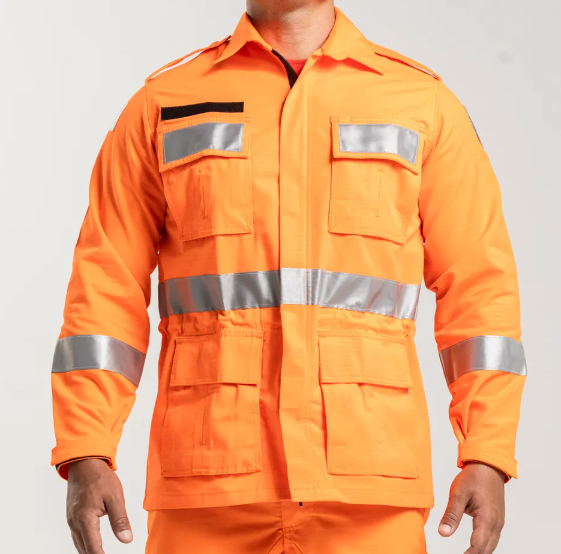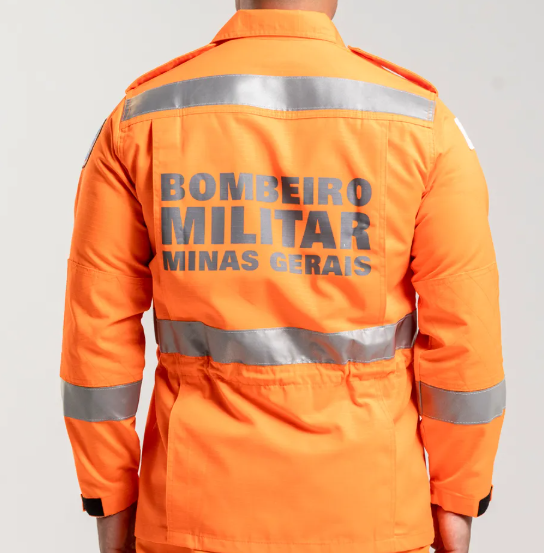O Conjunto de Farda de Bombeiro corresponde ao uniforme utilizado por profissionais do Corpo de Bombeiros, confeccionado com materiais resistentes e acabamento adequado para garantir conforto e durabilidade.